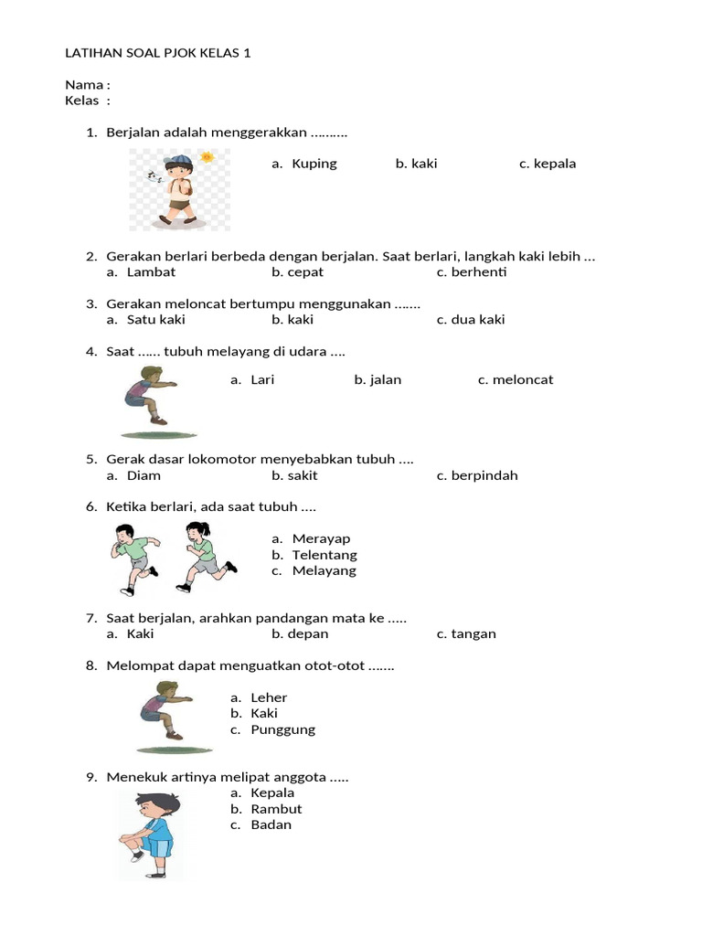 Artikel ini akan menyajikan kumpulan contoh soal ujian PJOK kelas 1 SD yang komprehensif, disertai dengan penjelasan singkat mengenai tujuan dari setiap jenis soal. Harapannya, kumpulan ini dapat menjadi referensi berharga bagi guru dalam menyusun perangkat evaluasi, serta bagi orang tua untuk memantau kemajuan belajar anak di rumah.